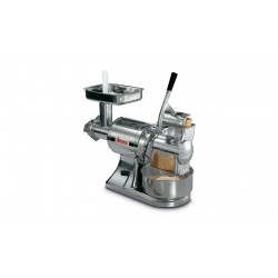 - Bocca ed elica tritacarne in ghisa trattata per uso alimentare, su richiesta anche in acciaio inox Aisi 304.