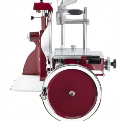 L'affettatrice modello 300 VOLANO costruita in alluminio e parti in acciaio, con una verniciatura a fuoco, ha il vantaggio di una rapida pulizia ed assoluta igiene.