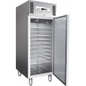 Armadio frigo per gelato. Armadio refrigerato per laboratori di pasticceria realizzato in acciaio inox AISI 304. Refrigerazione ventilata - gruppo incorporato -vano motore con fianchi coibentati - evaporatore posizionato a scomparsa in modo da avere il massimo spazio disponibile all’interno - controllo temperatura elettronico con termostato digitale - resistenza elettrica intorno alla cornice porta per eliminazione della condensa - sbrinamento automatico con resistenza elettrica e controllo automatico della temperatura di sbrinamento - evaporazione automatica dell’acqua di condensa -evaporatore trattato anti corrosione. Porta con molla di ritorno e reversibile - chiusura porta con chiave -guarnizione porta estraibile senza utensili - luce interna -fondo con angoli arrotondati - pannelli esterni di fondo e schienale in lamiera galvanizzata. Piedini in acciaio Inox AISI 304 regolabili in altezza.