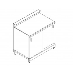 Corpo del retrobanco completamente in pannelli di lamiera inox AISI304 con finitura BA (lucida). Frontale a filo con gli altri elementi dell’arredo. Piano di fondo rinforzato e provvisto di passaggi apribili per i collegamenti idraulici. Ripiano intermedio rinforzato regolabile su più posizioni senza necessità di attrezzi. Basamento in acciaio al carbonio con strutture trasversali realizzate in tubolare completi di piedini di regolazione, mentre le barre longitudinali sono realizzate in lamiera pressopiegata elettrozincata e verniciate. Il basamento può essere allestito come accessorio a richiesta con un profilo supporto pedana.