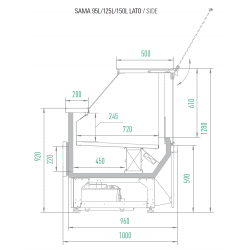 BANCO ESPOSITIVO PER CARNE SALUMI E LATTICINI CON CELLE RISERVA PROFONDITA' DEL BANCO 100 CM