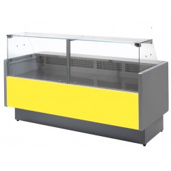 Il banco espositivo MR 80 e MR 9.5 con riserva refrigerata a sportelli, canalizzabile e dotato di vetri temperati ( curvi e dritti ) è adatto ad esporre gastronomia, carne, salumi e lattici, carne preconfezionata e snack.