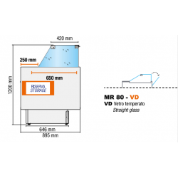 BANCO ESPOSITIVO REFRIGERATO VETRO DRITTO CON CELLE RISERVA - MENSOLA E ANTINE SCORREVOLI INCLUSE