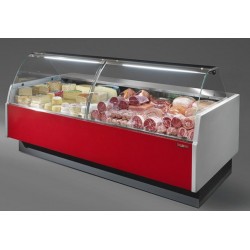 Il banco espositivo MR 80 e MR 9.5 con riserva refrigerata a sportelli, canalizzabile e dotato di vetri temperati ( curvi e dritti ) è adatto ad esporre gastronomia, carne, salumi e lattici, carne preconfezionata e snack.