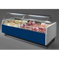 Il banco espositivo MR 80 e MR 9.5 con riserva refrigerata a sportelli, canalizzabile e dotato di vetri temperati ( curvi e dritti ) è adatto ad esporre gastronomia, carne, salumi e lattici, carne preconfezionata e snack.