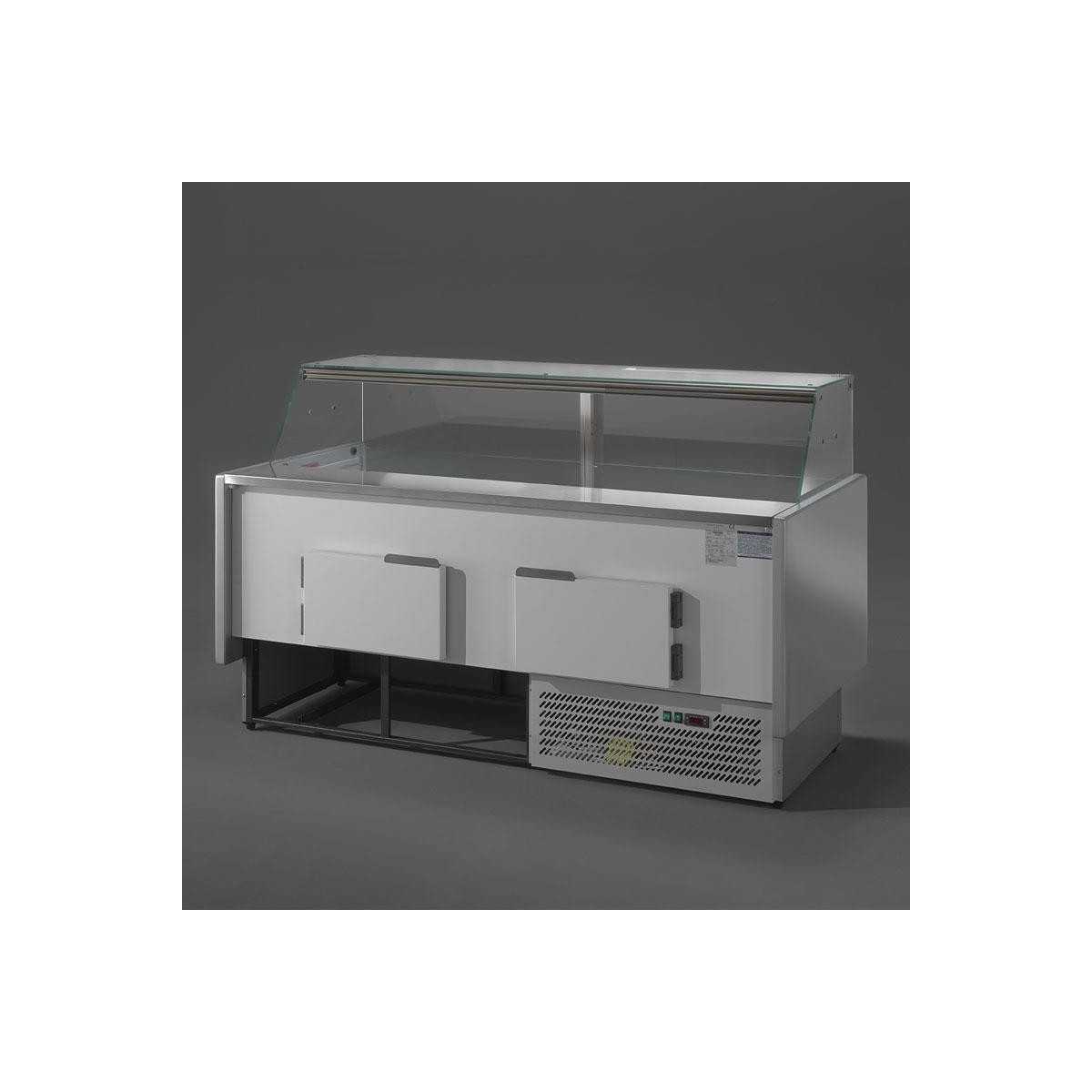BANCO ESPOSITIVO REFRIGERATO VETRO CURVO CON CELLE RISERVA - MENSOLA E ANTINE SCORREVOLI INCLUSE