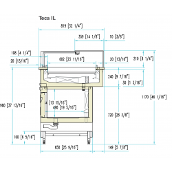 Scocca monolitica isolata con poliuretano ecologico espanso a CO2 densità 40 Kg/mc, realizzata internamente in acciaio INOX AISI304 18/10 finitura BA. Esternamente la parete posteriore è realizzata in INOX AISI304 18/10 finitura lucido protetto. Il fondo e la parete anteriore in lamiera elettrozinacata. Il banco è dotato di sistema anticondensa perimetrale costituito da un filo riscaldante messo a contatto con il perimetro esterno del piano. I banchi drop-in sono caratterizzati dal paino di servizio che si trova alla stessa altezza del piano anteriore lato cliente facilitando la costruzione del rivestimento mantenendo un’ottima esposizione del prodotto. Il paino di servizio e il piano anteriore sono realizzati in acciaio INOX AISI304 18/10 di spessore 1,00 mm. Di standard i fianchi inox sono allo stesso livello del piano di servizio ma su richiesta è possibile ricevere un fianco ribassato che permette di canalizzare due o più banchi mantenendo il livello dei vassoi continuo tra i due banchi. I drop-in sono tra loro canalizzabili tramiti viti di canalizzazione poste all’interno della vasca, facilmente accessibili. Su richiesta il banco può essere fornito privo di piani di servizio inox con predisposizione per ricevere piani in marmo, corian, granito ecc. I vassoi espositivi interni sono in acciaio inox 18/10 finitura lucido, le loro dimensioni sono ottimizzate per alloggiare vassoi 600x400. L’altezza dei vassoi è regolabile in 3 posizioni passo 20 mm e all’occorrenza possono essere inclinati. La regolazione avviene tramite uno specifico supporto inox che può essere regolato senza l’utilizzo di utensili. L’accesso ai componenti interni della vasca è estremamente comodo per permettere una facile pulizia.