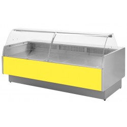 Il banco espositivo MR 80 e MR 9.5 con riserva neutra a sportelli, canalizzabile e dotato di vetri temperati ( curvi e dritti ) è adatto ad esporre panetteria, rosticceria e gastronomia.
