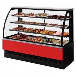 BANCO VETRINA PER ALIMENTI - SERVIZIO ASSISTITO - 3 MENSOLE IN VETRO - ILLUMINAZIONE INTERNA- VETRI FRONTALI APRIBILI-NORMA CE