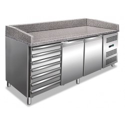 BANCO PIZZA CON VETRINA PROFONDITA' 39,5 cm 3 PORTE TEMPERATURA +2°/+8° VENTILATO