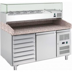 BANCO PIZZA - CON VETRINA PROFONDITA' 39 cm- 3 PORTE E CASSETTIERA -TEMPERATURA +2°/+8° - VENTILATO