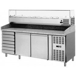 BANCO PIZZA - CON VETRINA PROFONDITA' 39 cm- 4 PORTE -TEMPERATURA +2°/+8° - VENTILATO