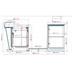 VANO A GIORNO L 1000 - H 690 - P 600 mm per l’inserimento della lava tazze con vasca di protezione del fondo in alluminio