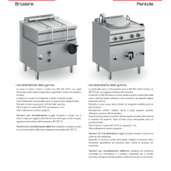 La gamma di brasiere PIANETACHEF si compone di modelli monoblocco, con riscaldamento a gas e con riscaldamento elettrico.