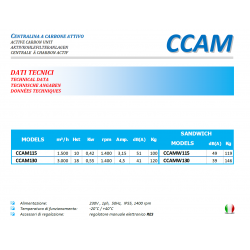 centralina di deodorizzazione e filtrazione di sostanze organiche e chimiche composto da ventilatore centrifugo cassonato a doppia aspirazione con motore monofase direttamente accoppiato alla girante - filtro a cella metallica lavabile G2 - cartucce a carbone attivo.