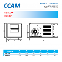- ventilatore centrifugo cassonato a doppia aspirazione con motore monofase direttamente accoppiato alla girante - filtro a cella metallica lavabile G2 - cartucce a carbone attivo