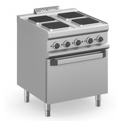 armadio aperto e su forno statico elettrico) e nella versione top. Piastre in ghisa tonde, quadre o ribassate. Termostato di servizio a 6 (+1)