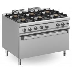 CUCINA PROFESSIONALE 6 FUOCHI A GAS SU FORNO MAXI A GAS - PROFONDITA' 90 cm