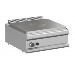 Altre caratteristiche: struttura in acciaio inox AISI 304, piastre in ghisa, anello centrale mobile, temperature differenziate da 500° all’interno fino ai 200° sui bordi, angoli raggiati, congiunzione con coprigiunto, piedini regolabili per i modelli su armadio e possibilità di avere fuochi e forno.