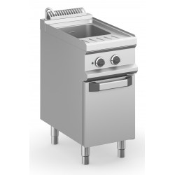 Cuocipasta a gas con mobile, unisce alla praticità del suo utilizzo la capienza del mobile sottostante. Possono avere 2 vasche separate: la vasca singola può essere dai 26 ai 40 litri, la vasca doppia 28 + 28 litri o 40 + 40 litri.
