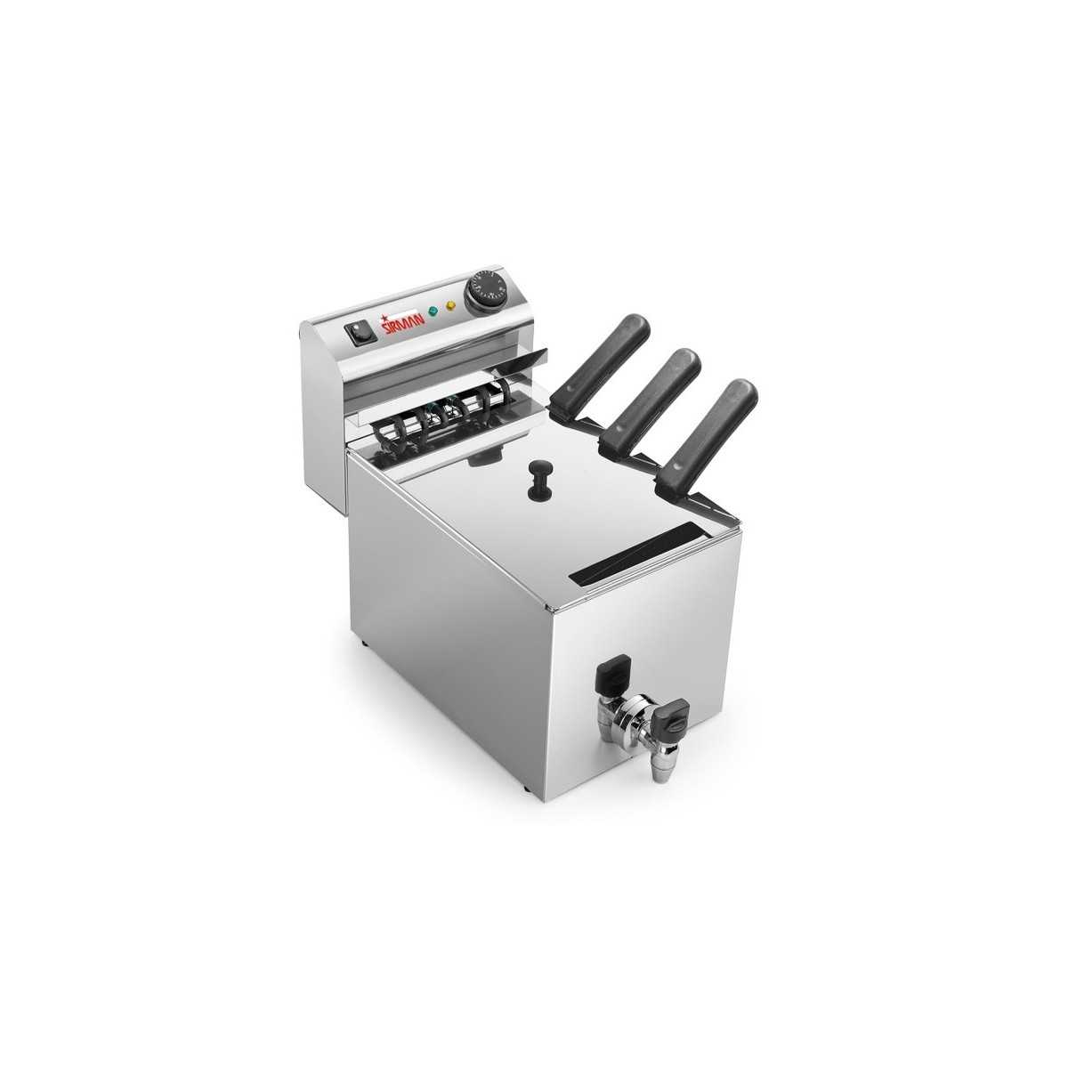 Cuocipasta snack elettrico, compatto ma capiente, veloce e semplice nel suo utilizzo grazie anche al termostato di controllo. Possono avere una capienza tra i 6 e gli 11 litri.