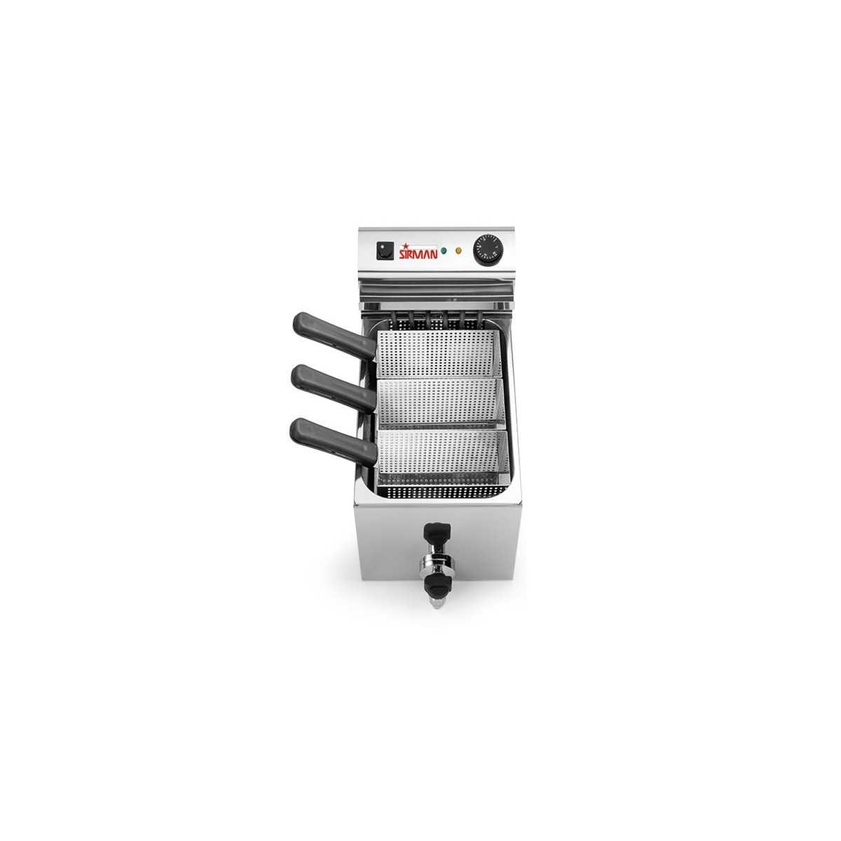 Cuocipasta elettrico. 3 cestelli mm 95x220 h 130. Struttura e vasca in acciaio inox. Cestelli microforati in acciaio inox con pratico manico. Resistenza corazzata speciale antiruggine. Termostato di controllo. Protezione termica di sicurezza.