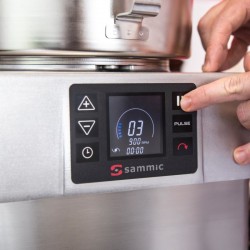 Appositamente progettato per funzionare con liquidi ed emulsionare. Velocità variabile, pannello di comandi con timer e coperchio con raschiatore "cut&mix".