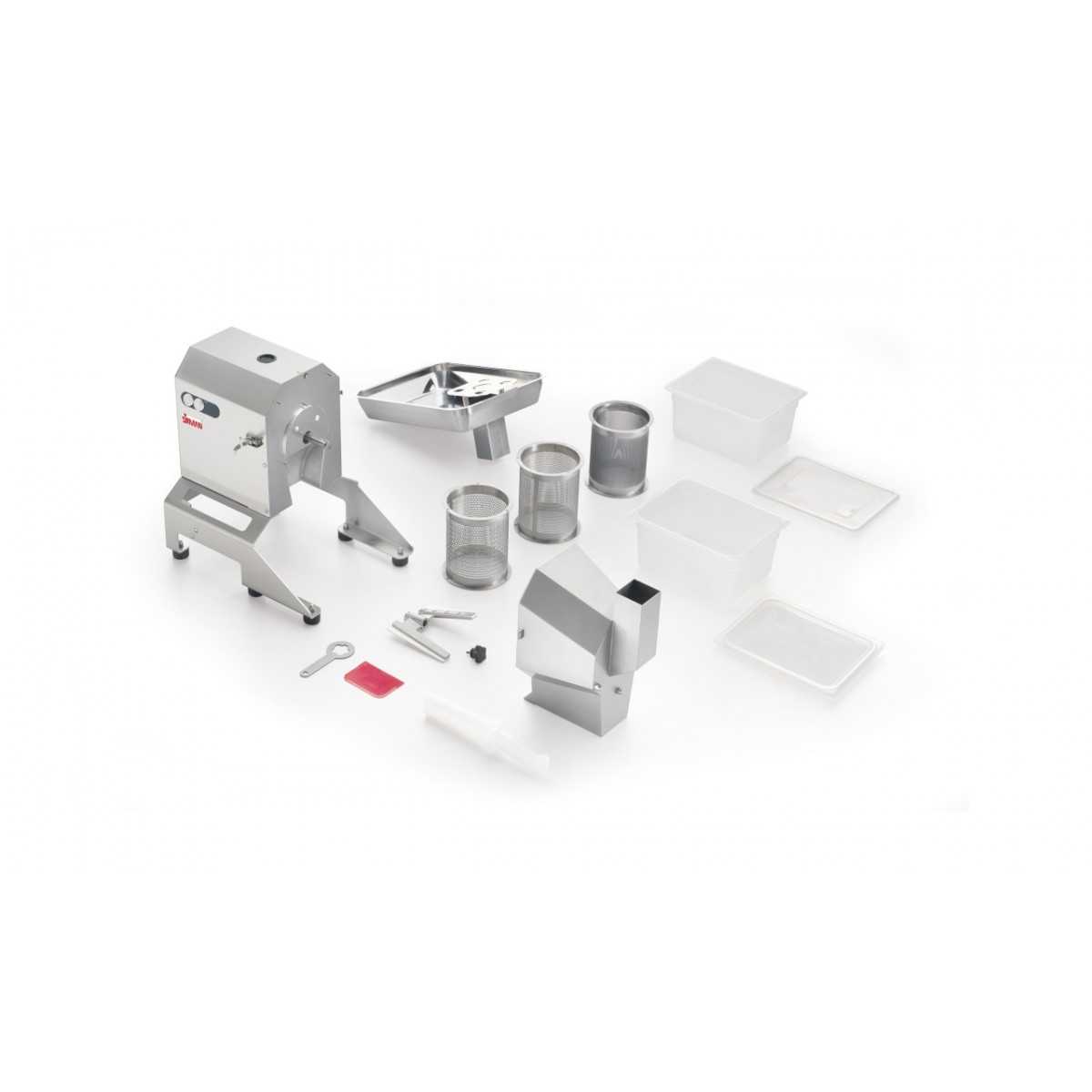 - É un moderno passaverdure motorizzato che, grazie al suo sistema a setacci intercambiabili, permette di lavorare frutta e verdura in gran velocità. Può essere usato anche come denocciolatore, per frutta matura, dove la polpa può essere facilmente separata dall’osso.
