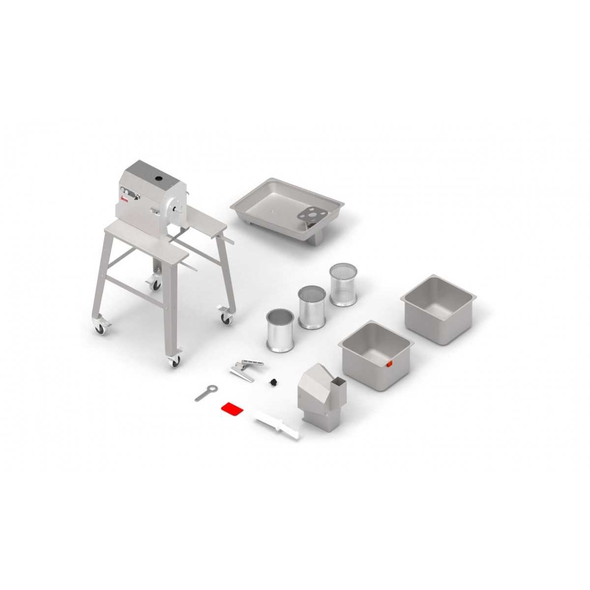 - É un moderno passaverdure motorizzato che, grazie al suo sistema a setacci intercambiabili, permette di lavorare frutta e verdura in gran velocità. Può essere usato anche come denocciolatore, per frutta matura, dove la polpa può essere facilmente separata dall’osso.