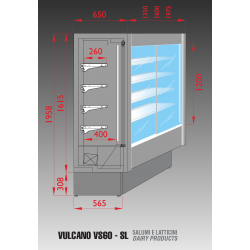 Espositore murale senza ante, temperature da 0° a +10°, per salumi, latticini, carni, preconfezionati o bibite. Con o senza ruotine. Da 2 a 4 ripiani. Refrigerazione ventilata. Le dimensioni: larghezza da 60 cm a 108, profondità da 50 cm a 90 cm e altezza da 125 cm a 204 cm.
