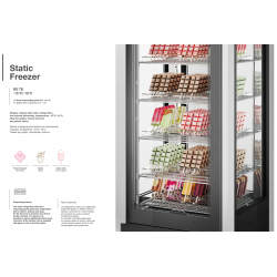 La refrigerazione statica con griglie fisse evaporanti genera un freddo uniforme, delicato e profondo. È il modo migliore per conservare le vostre creazioni di pasticceria gelata. Su richiesta è possibile aggiungere un ulteriore ripiano di fondo, inoltre tutti i ripiani possono essere forniti di vetri da appoggiare sulle griglie fisse.