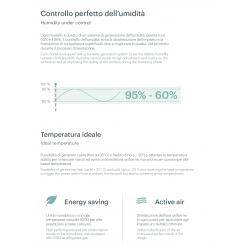 Ogni modello è dotato di un sistema di generazione dell’umidità, gestita tra il 60 % e il 95 %. Il controllo dell’umidità evita la disidratazione dell’impasto e la formazione di screpolature superficiali oltre a migliorare la qualità del prodotto durante il processo di lievitazione.e i