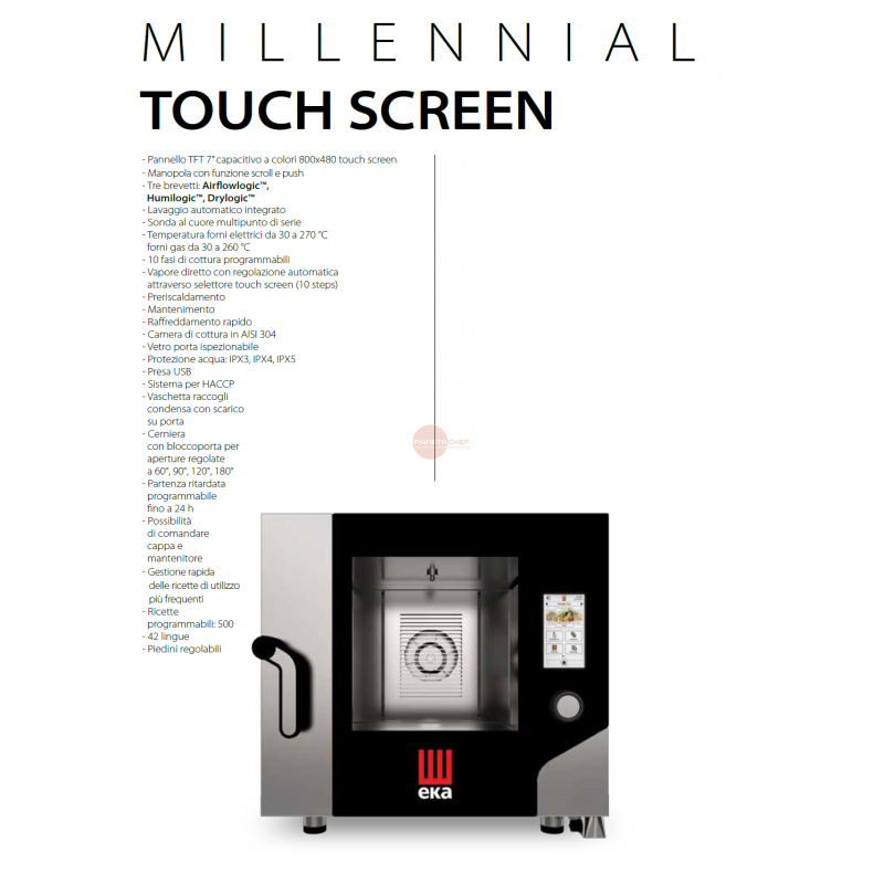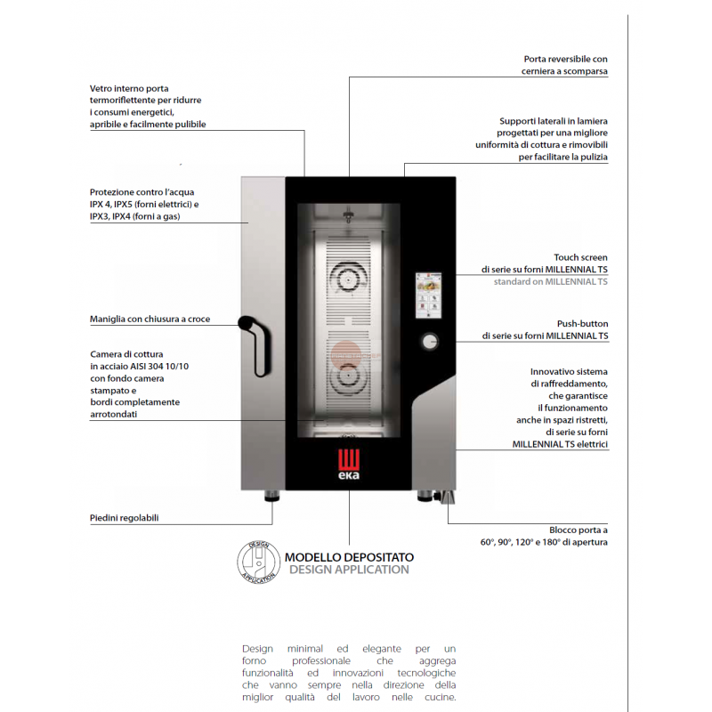 Design minimal ed elegante per un forno professionale che aggrega funzionalità ed innovazioni tecnologiche che vanno sempre nella direzione della miglior qualità del lavoro nelle cucine.