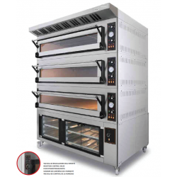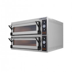 Forno elettrico con 2 camere di cottura, i comandi possono essere sia digitali che meccanici, possono cucinare da 1 + 1 a 9 + 9 pizze contemporaneamente (più o meno a seconda del diametro).