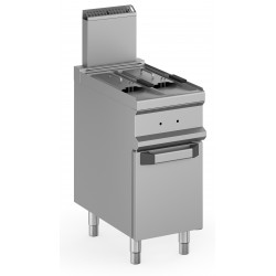 Friggitrice elettrica su armadio, facile da usare e da pulire. Possono avere 1 o 2 vasche dai 13 litri ai 18 litri, le doppie vasche vanno dai 8 + 8 litri ai 17 + 17 litri. Sono trifase.