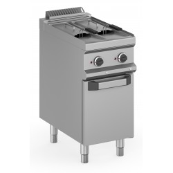 Friggitrice elettrica su armadio, facile da usare e da pulire. Possono avere 1 o 2 vasche dai 13 litri ai 18 litri, le doppie vasche vanno dai 8 + 8 litri ai 17 + 17 litri. Sono trifase.