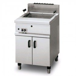 Friggitrice elettrica su armadio, facile da usare e da pulire. Possono avere 1 o 2 vasche dai 13 litri ai 18 litri, le doppie vasche vanno dai 8 + 8 litri ai 17 + 17 litri. Sono trifase.
