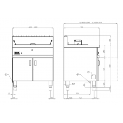Friggitrice a gas su armadio, semplici ed efficienti. Possono avere 1 o 2 vasche dai 10 litri ai 18 litri, le vasche doppie vanno dai 8 + 8 litri ai 14 + 14 litri.