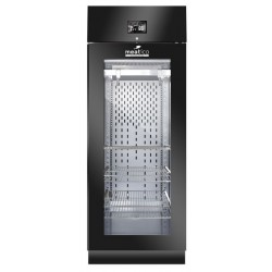 - esterno in acciaio plastificato nero con porta a vetro, interno in acciaio inox AISI 304 lucido a specchio