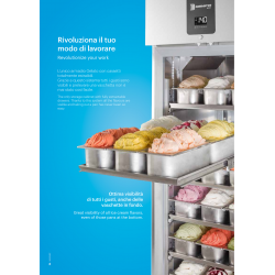 È finito il tempo degli armadi che si limitano solo a conservare! Un moderno laboratorio di gelateria ha bisogno della funzionalità e del comfort di un congelatore che permetta di accedere senza sforzo a tutti i contenitori gelato. Così durante la produzione del gelato sarà veloce caricare l’armadio e ancora più facile trasferire le vaschette nella tua vetrina espositiva senza far aspettare i clienti.
