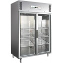 Frigorifero vetrina. Armadio refrigerato GN2/1 in acciaio inox AISI 304. Refrigerazione ventilata. Gruppo incorporato. Evaporatore posizionato a scomparsa in modo da avere massimo spazio disponibile. Vano motore con fianchi coibentati. Controllo temperatura elettronico con termostato digitale. Resistenza elettrica intorno alla cornice porta per eliminazione della condensa. Sbrinamento automatico con resistenza elettrica e controllo automatico della temperatura di sbrinamento. Evaporazione automatica dell’acqua di condensa. Evaporatore trattato anticorrosione. Porta con molla di ritorno e reversibile. Chiusura porta con chiave. Guarnizione porta estraibile senza utensili. Luce interna. Fondo con angoli arrotondati. Pannelli esterni di fondo e schienale in lamiera galvanizzata. Piedini in acc. Inox Aisi 304 regolabili in altezza.