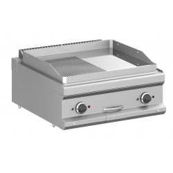 FRY TOP ELETTRICO PROFESSIONALE DA BANCO PIASTRA 1/2 LISCIA E 1/2 RIGATA CROMATA - PROFONDITA' 70 cm