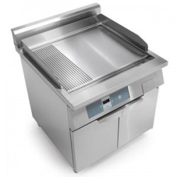 FRY TOP A INDUZIONE PROFESSIONALE ARMADIATO PIASTRA 2/3 LISCIA ED 1/3 RIGATA - PROFONDITA' 90 cm