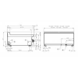 Fry-top elettrico su armadio, con piastra liscia o rigata o con entrambe, cromata o in acciaio, a partire dai 35 cm fino a 70 cm, profondità da 70 cm o 90 cm.