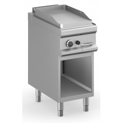 La gamma di frytop PIANETACHEF offre modelli per cotture a contatto, con piastre in acciaio satinato lisce, rigate, lisce e rigate, sia in versioni 1/2 modulo che modulo intero, con funzionamento elettrico o a gas, tutti con controllo termostatico della temperatura di lavoro. Piastra di cottura in acciaio dolce liscia o rigata con finitura levigata.