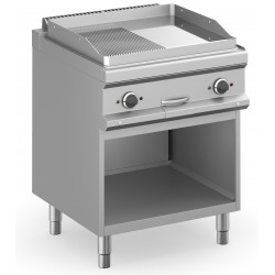 FRY TOP ELETTRICO PROFESSIONALE SU ARMADIO A GIORNO PIASTRA 1/2 LISCIA E 1/2 RIGATA CROMATA - PROFONDITA' 70 cm