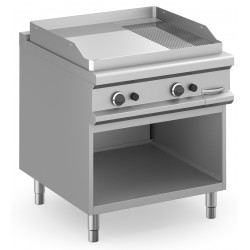 FRY TOP PROFESSIONALE A GAS SU ARMADIO A GIORNO PIASTRA 2/3 LISCIA ED 1/3 RIGATA CROMATA - PROFONDITA' 90 cm