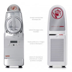 Macchina per gelato / dessert. Tecnicamente avanzata, nata dalle esigenze di chi vuole accontentare i propri Clienti con un gelato dessert sempre d’eccezione. Compatta, concepita per un facile utilizzo, dal design sobrio ed elegante, nata per essere notata e per presentare al meglio il gelato. Un prodotto esclusivamente Italiano per i locali che vogliono l’eccellenza. Disponibile anche la versione con luce e chiusura di sicurezza con chiave.