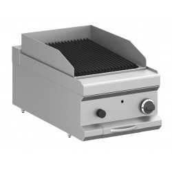 La gamma di griglie pietra lavica PIANETACHEF si compone di modelli sia 1/2 modulo che modulo intero, con funzionamento a gas, nella versione monoblocco su base armadiata e top. Griglia/piano cottura ghisa.