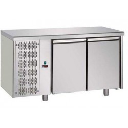 Tavolo refrigerato con refrigerazione ventilata, capienza da 282 a 620 litri, temperature positive (0 +10) e negative (-18 -22), larghezza da 128 cm a 232 cm, profondità da 70 cm a 80 cm e altezza da 85 cm a 95cm.